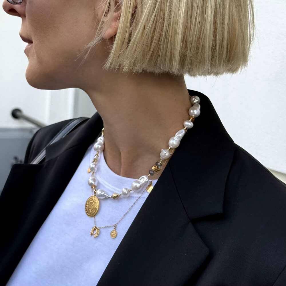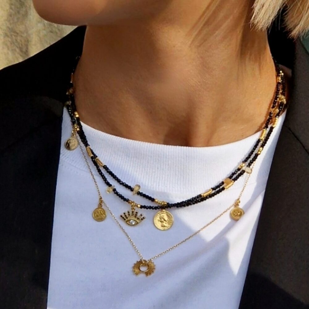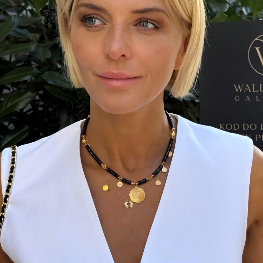 - szeroki wybór naszyjników – połączenie pozłacanego srebra z nietuzinkowymi zawieszkami, naturalnymi kamieniami i perłami pozwala tworzyć biżuterię idealnie dopasowaną do stylizacji casualowych, biznesowych oraz wieczorowych. Możesz wybrać krótkie naszyjniki w bardziej minimalistycznym wydaniu lub dłuższe wzory (np. sznury pereł) pięknie podkreślające dekolt. Podobnie jak Coco Chanel i księżna Kate kochasz niepowtarzalny blask pereł? Podobają Ci się luksusowe szafiry, szmaragdy lub rubiny? Wolisz subtelne kryształy górskie, labradoryty, topazy czy morganity? A może Twoje serce już dawno należy do eleganckiego połączenia czerni ze złotem? Wybór należy tylko do Ciebie,