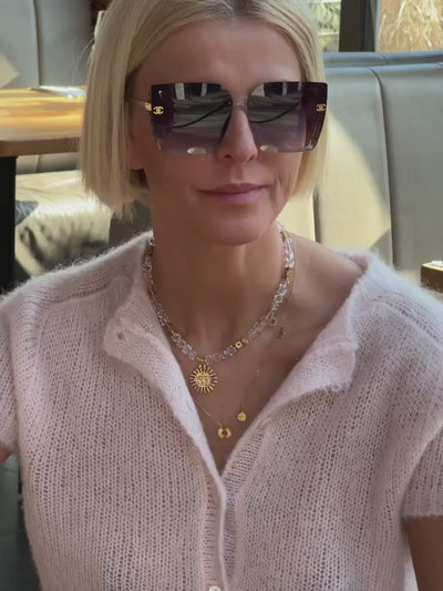 Rock Crystal Necklace with Pendant - Sun