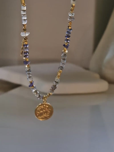 Naszyjnik z Labradorytu i Szafirów Wodnych z Zawieszką - Moneta