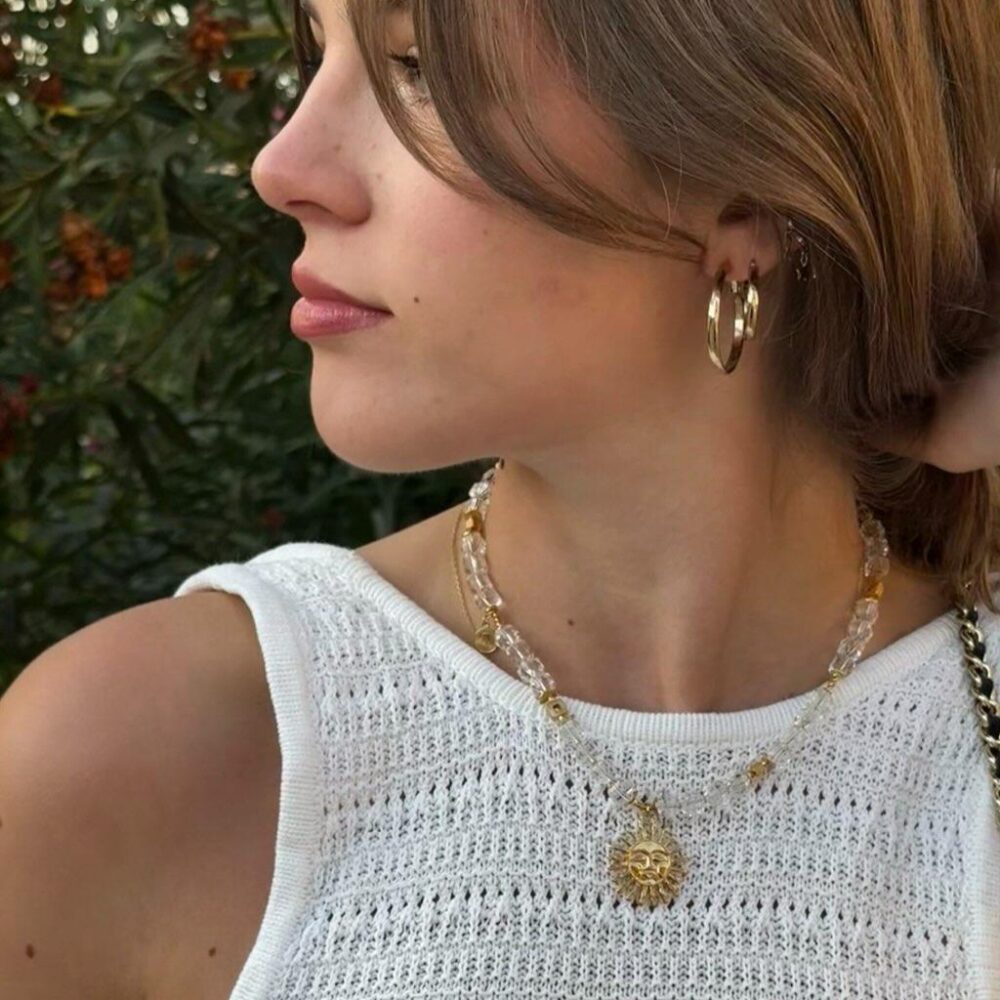 Kryształ górski to minerał o wyjątkowym połysku, a odpowiedni szlif powoduje, że kamienie pięknie odbijają światło i niezwykle zdobią dekolt właścicielki.
