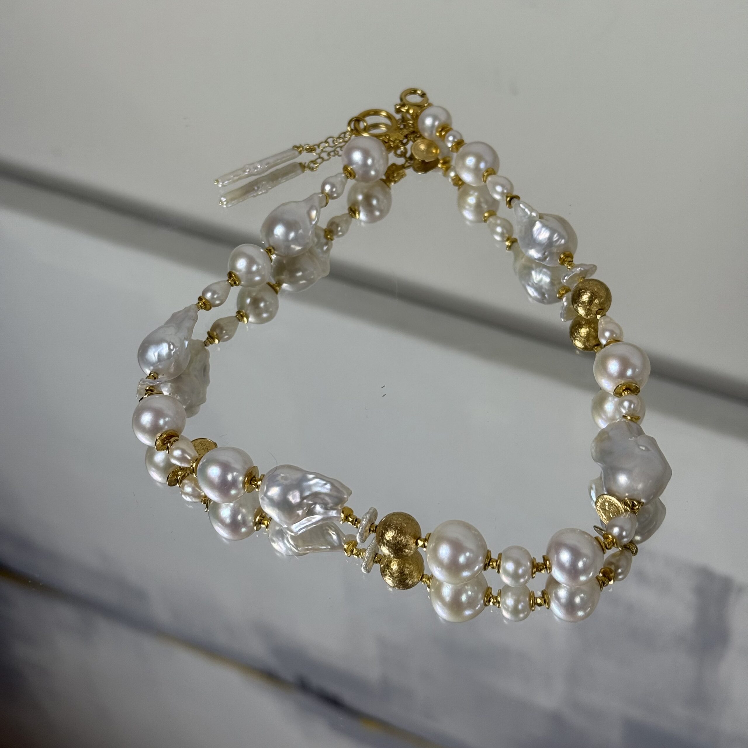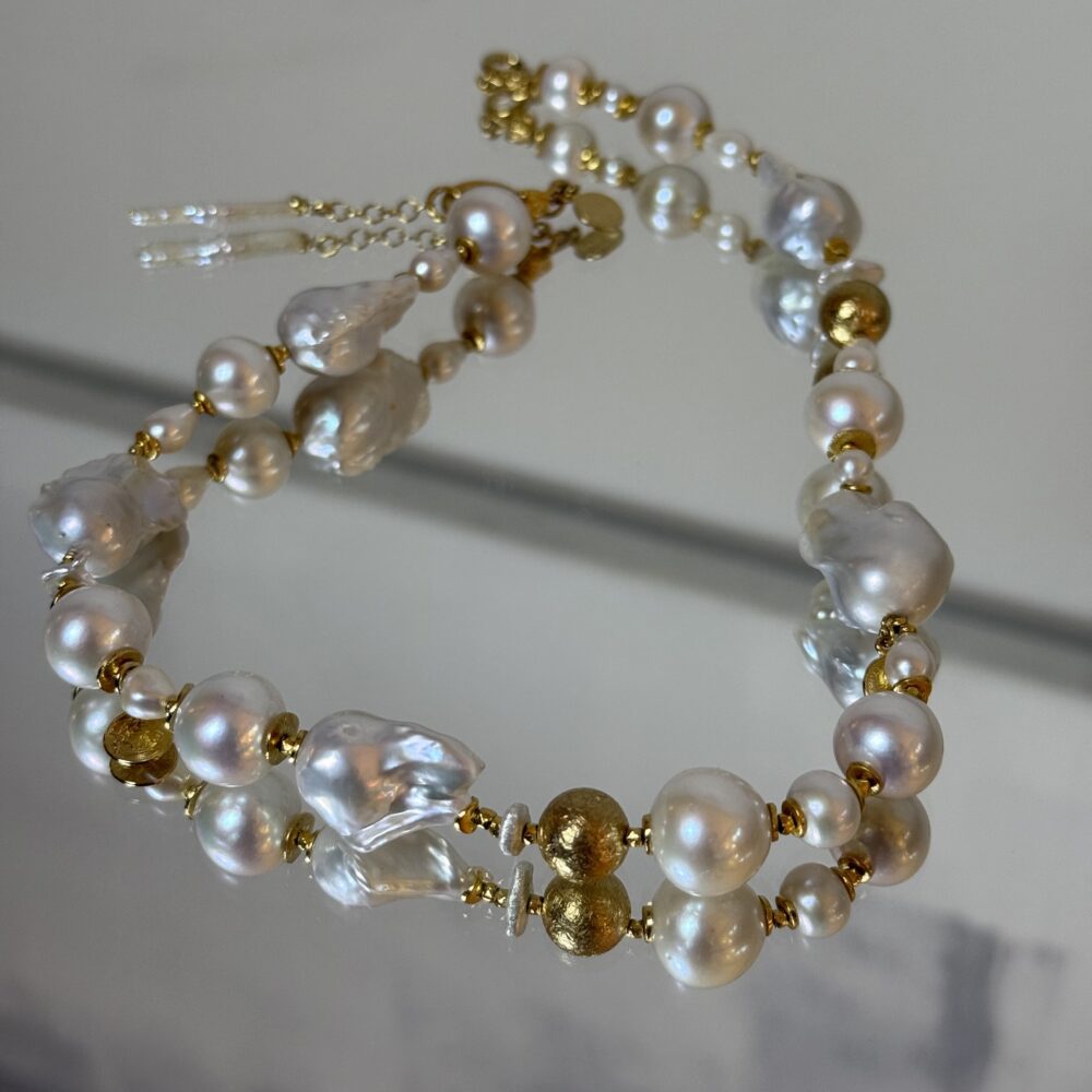Ten unikatowy choker wykonalam ręcznie w mojej pracowni, z unikatowych pereł barokowych o wyjątkowym połysku i nieregularnych kształtach.