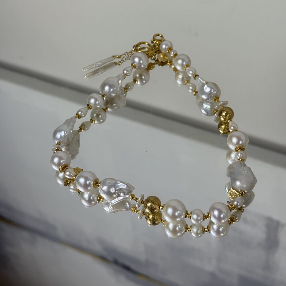 Choker z białych pereł barokowych
