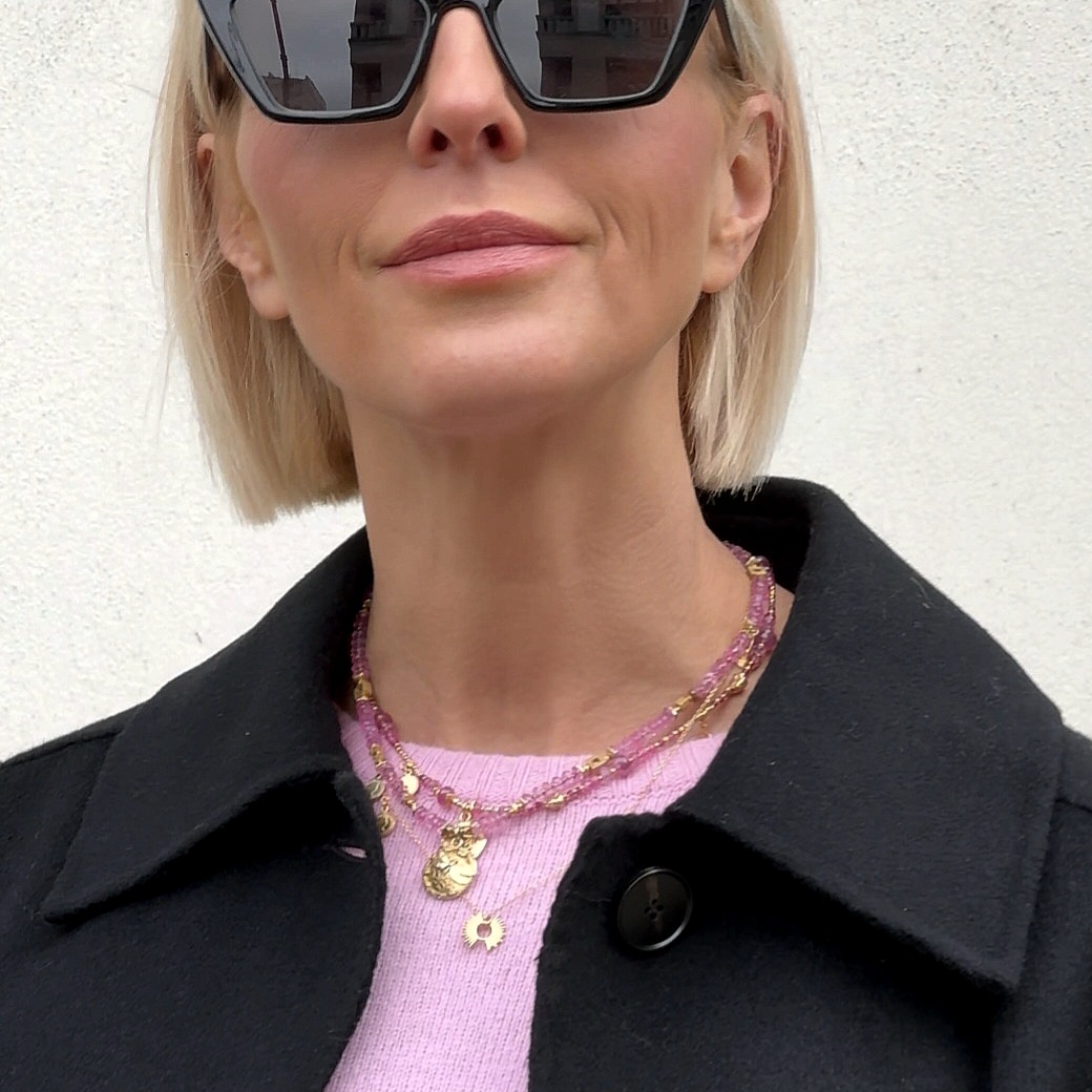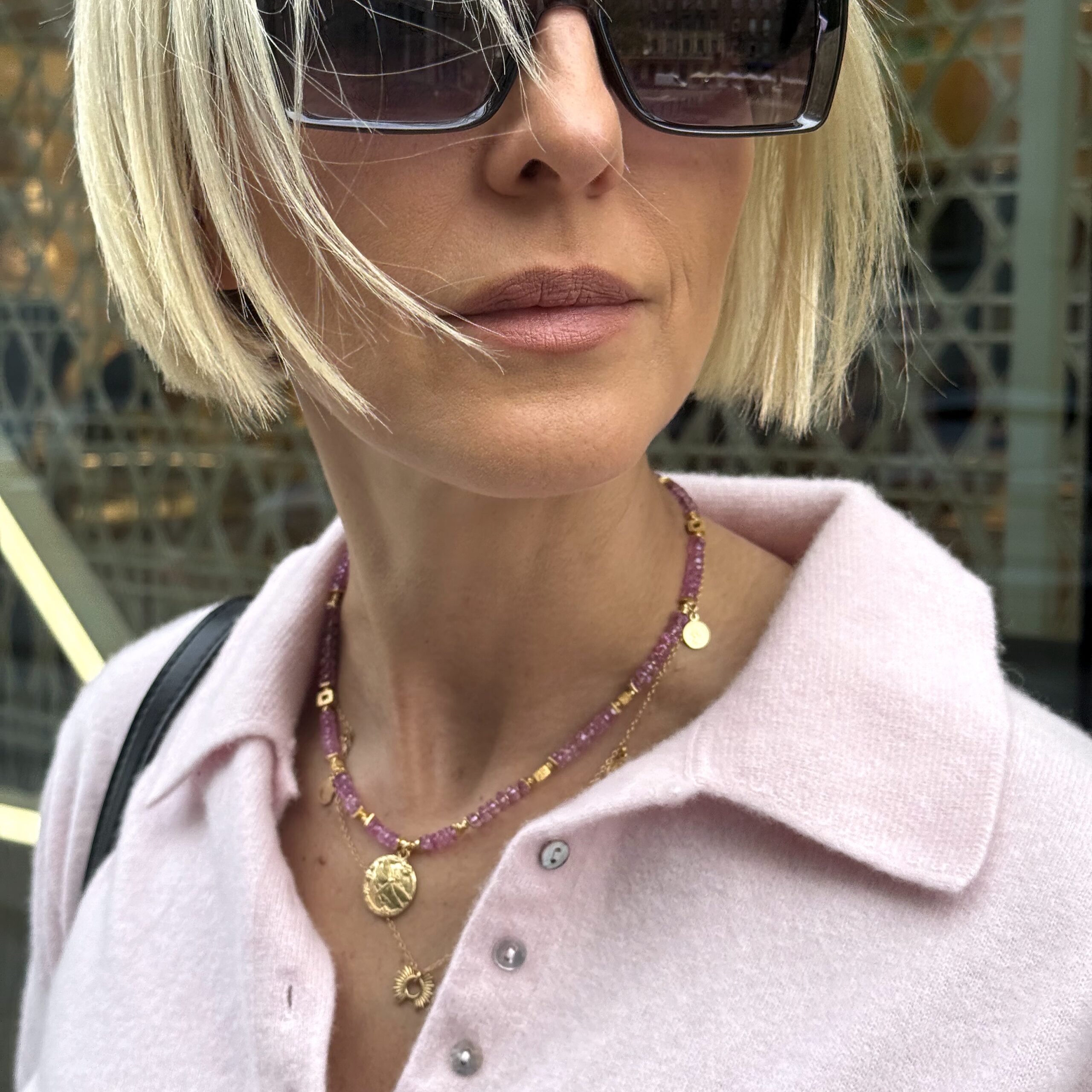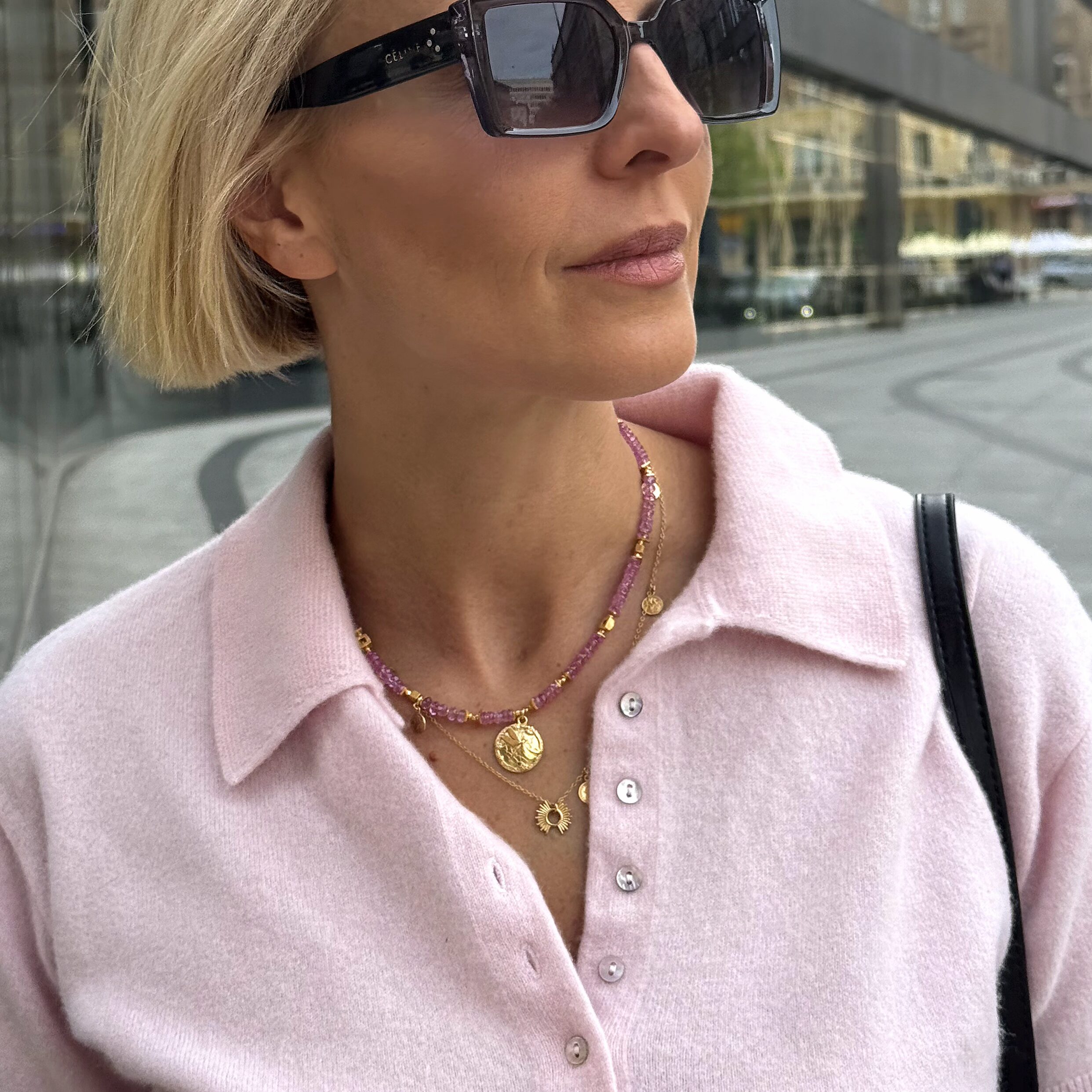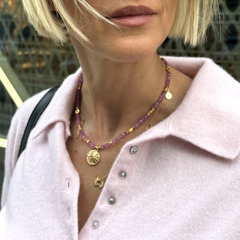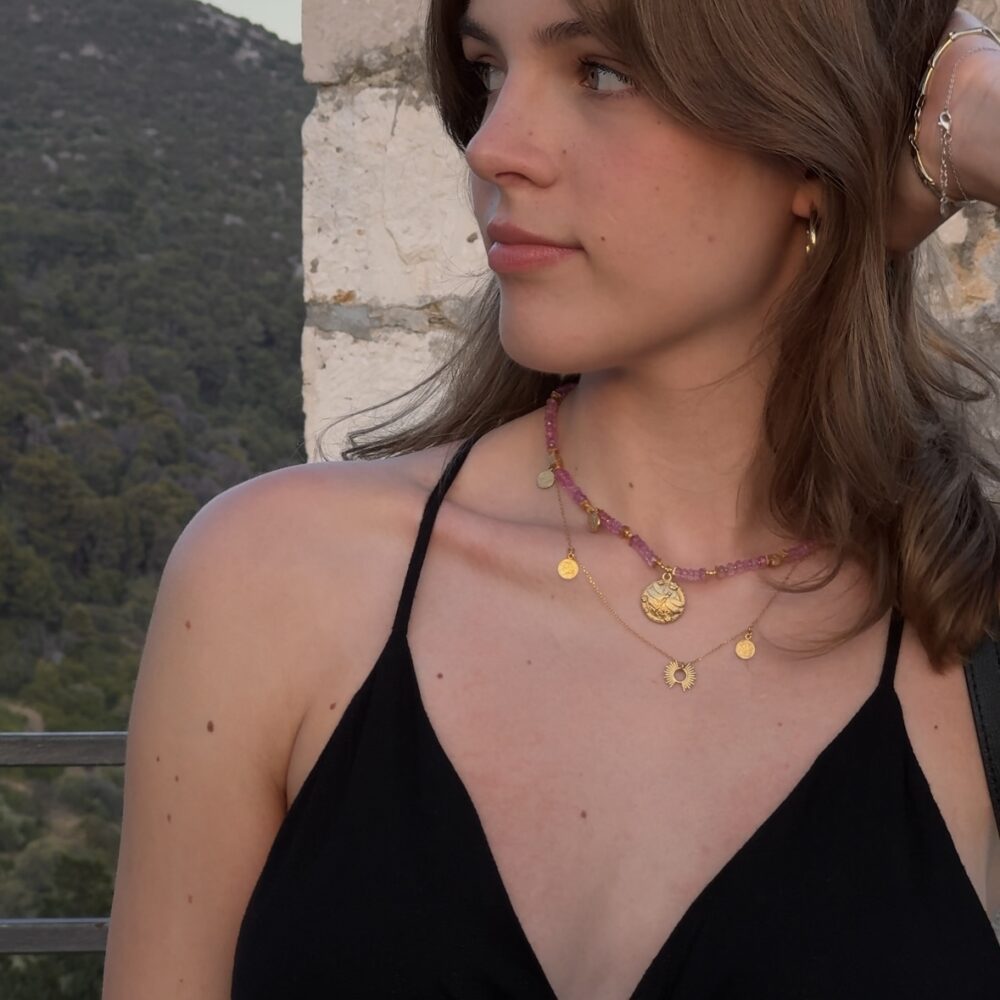 Możesz połączyć go z innym naszyjnikiem z rubinów, różowych turmalinów i topazów otrzymując wyjątkowy i niepowtarzalny zestaw w kolorach delikatnego różu.