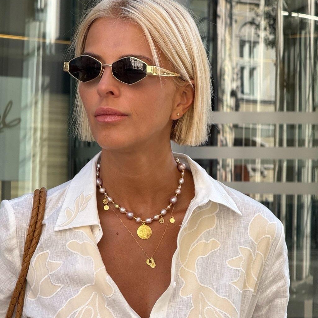Naszyjnik z szaro-różowych pereł Edison Perły Edison to Perły słodkowodne, jądrowe o wyjątkowej jakości, które powstają przez włożenie okrągłego jądra do wnętrza małży Perły Edison charakteryzują się pastelowymi odcieniami koloru kremowego, szarego i różowego. Biżuteria Ula Sienicka Art to biżuteria autorska, unikatowa, wykonana ręcznie z wysokiej jakości kamieni naturalnych: szafirów, rubinów, szmaragdów, tanzanitów apatytów, kianitów, turmalinów oraz wielu innych. W swojej pracy do zawieszek i elementów dekoracyjnych używam tylko srebra najwyższej próby, ktore złocone jest grubą warstwą 24k złota, w zależności od modelu biżuterii od 1 do 2 mikronów. Pielęgnacja biżuterii: Zdejmuj biżuterię do prac domowych i przed treningiem, by nie narazić jej na uszkodzenia mechaniczne lub chemiczne ( pot, detergenty). Pamiętaj, że biżuteria jest wrażliwa na pryskanie perfumami, nie służy jej słona i chlorowana woda.Po zdjęciu najlepiej przechowuj ją w zamkniętym pudełeczku z dala od wilgoci ( na pewno nie w łazience)